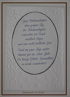 Deshalb verwende ich sie auch immer wieder gern auf Weihnachtskarten, mit Brads befestigt, können sie von der Karte gelöst werden und noch viele Jahre als Baumschmuck, Adventskränzen, als Fensterschmuck oder wie auch immer verwendet werden. So erinnern sie vielleicht auch später an den lieben Kartengruß.